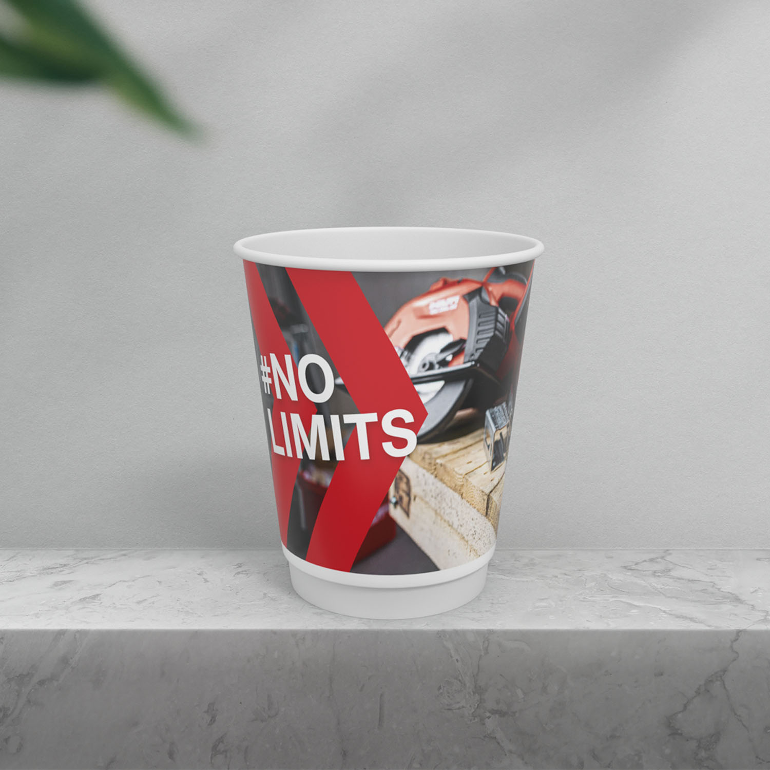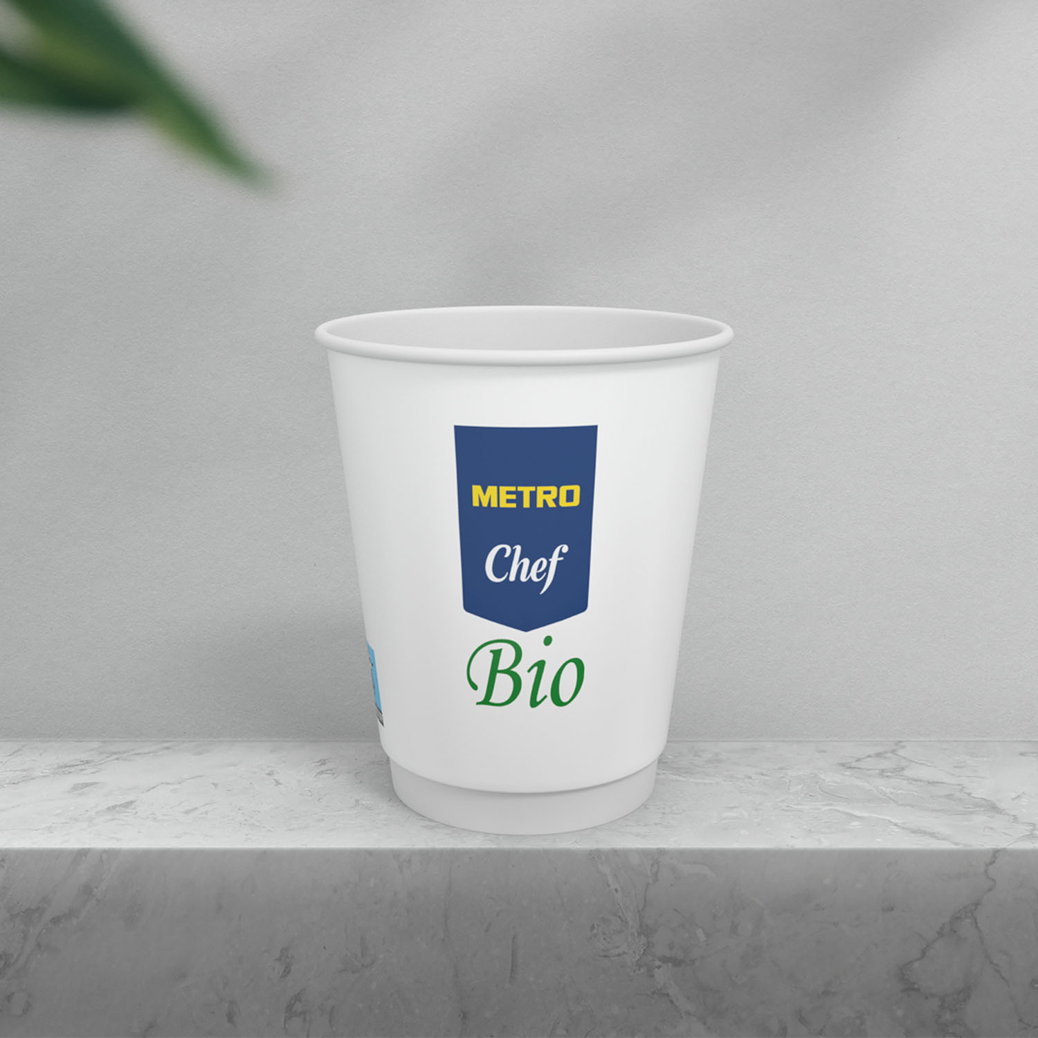 Double-Wall Pappbecher sind im Digitaldruck rundum bedruckbar. Sie sind die ideale Wahl für Heißgetränke. Die Druckfläche ist ein ungestrichener Lebensmittelkarton.
