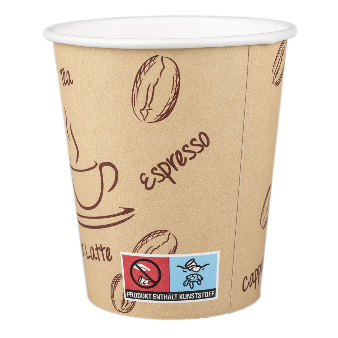 Pappbecher und Plastikbecher mit SUPD-Kennzeichnung
